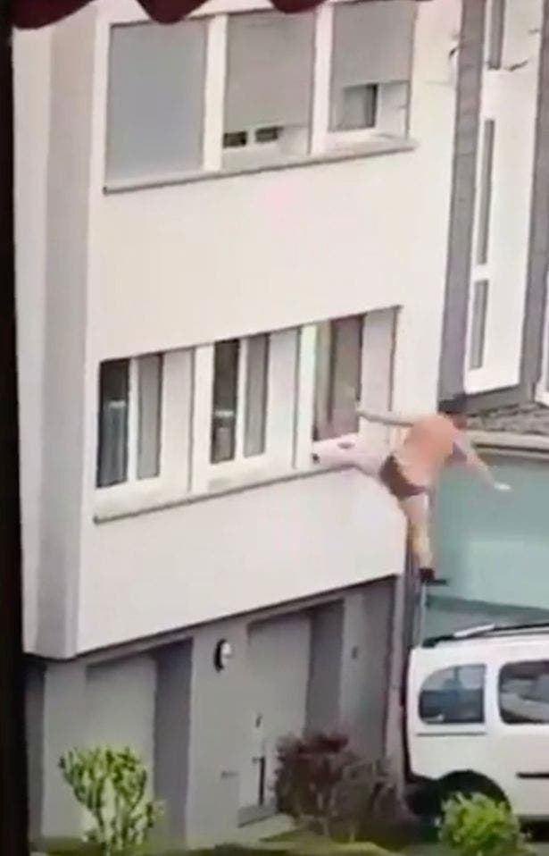 L’histoire se serait déroulée en Suisse avant d’être partagée sur les réseaux sociaux. La scène qui ne dure que quelques secondes montre l’homme qui tente de fuir avec beaucoup de difficulté. Il semble avoir du mal à s’accrocher à cette “issue de secours”, car il finit par lâcher prise malgré lui avant de se retrouver par terre, percutant au passage un véhicule blanc. Comme si cela ne suffisait pas, le protagoniste est à moitié nu, vêtu seulement de son caleçon et de chaussettes noires.