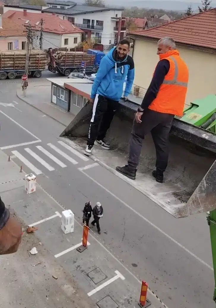 Deux personnes aux proportions improbables. Ou est-ce simplement un jeu de perspective qui défie la gravité et sème le doute ?