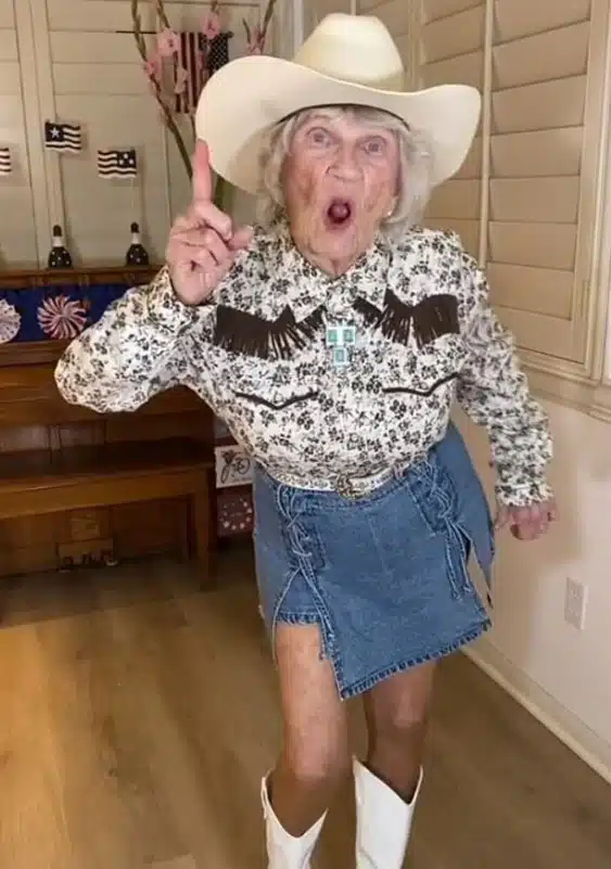 L’une de ses vidéos les plus populaires ? Celle où elle bouge sur le rythme de « Pretty Girls Walk Like This ». Avec ses talons blancs, sa jupe métallisée et son allure confiante, Betsy parade avec une élégance espiègle qui ferait rougir de jalousie bien des passionnés de mode. Plus qu’un simple spectacle, c’est une véritable ode à la vie, à l’amour de soi et à la liberté de s’exprimer à tout âge.