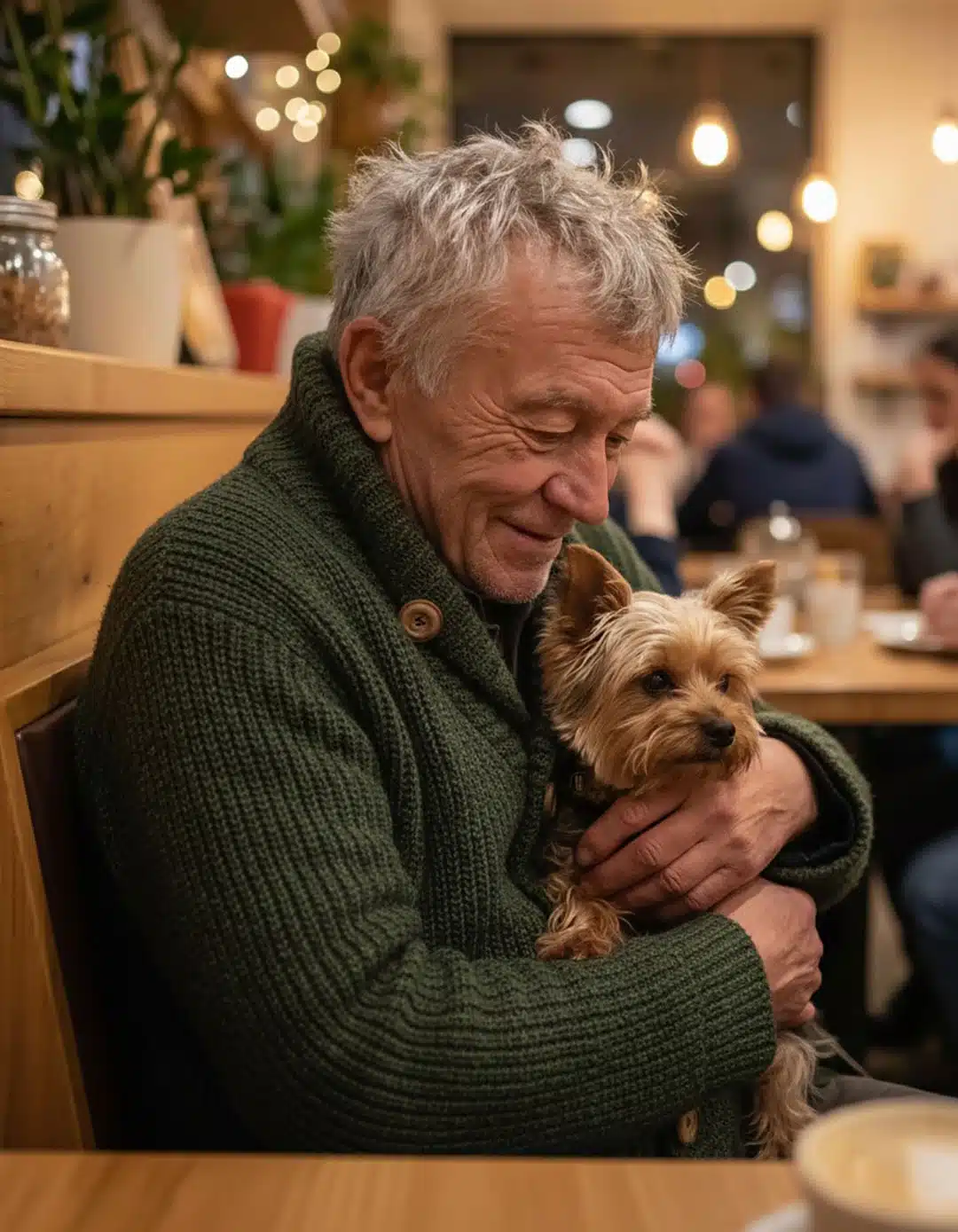 Un homme d’un certain âge est entré, s’appuyant sur une canne, suivi d’un petit chien à l’air vigilant. Il a passé un long moment à examiner la carte avant de choisir le plat le plus abordable, avec une pointe de gêne. Léa a vu qu’il comptait ses pièces avec une grande attention.