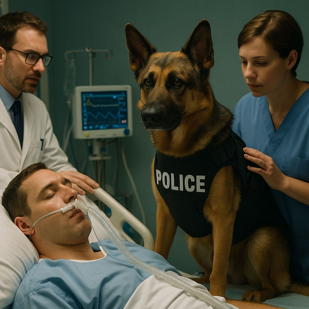 L’agent Thomas Dubois était plongé dans un profond coma depuis deux semaines après un grave accident survenu en service. L’espoir s’amenuisait jour après jour. Les médecins avaient prévenu sa famille : il fallait se préparer au pire. Sa femme, Camille, effondrée mais lucide, demanda alors une faveur inhabituelle : faire venir Léon, le chien qui avait partagé la vie de Thomas pendant sept ans.