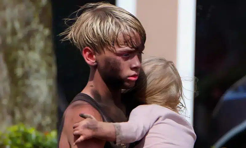 Je n’avais pas vraiment compris ce qui se passait au début… jusqu’à ce moment où j’aperçoive une forme émerger des volutes de fumée. C’était lui, mon garçon de treize ans, le visage maculé de cendres, le regard encore humide, serrant contre lui une petite fille terrifiée. À cet instant précis, le monde semblait s’être figé.