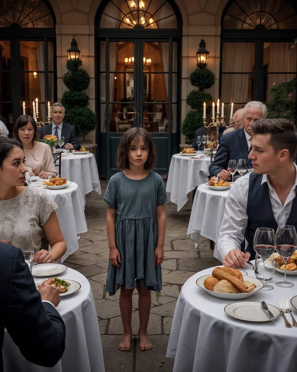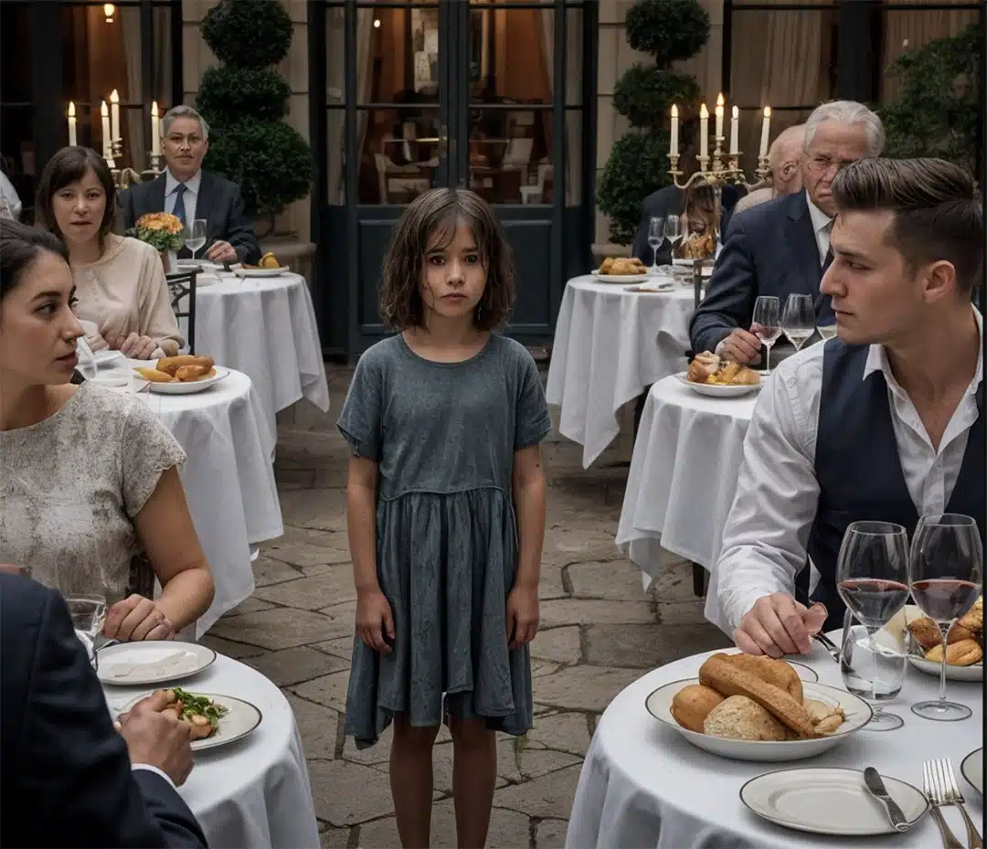Une tension palpable envahit l’espace. Face à lui se dressait une enfant au regard las, aux traits marqués par les privations, témoin silencieux d’une jeunesse volée. À ce moment précis, Julien déposa ses couverts… et fit un choix qui allait tout changer.