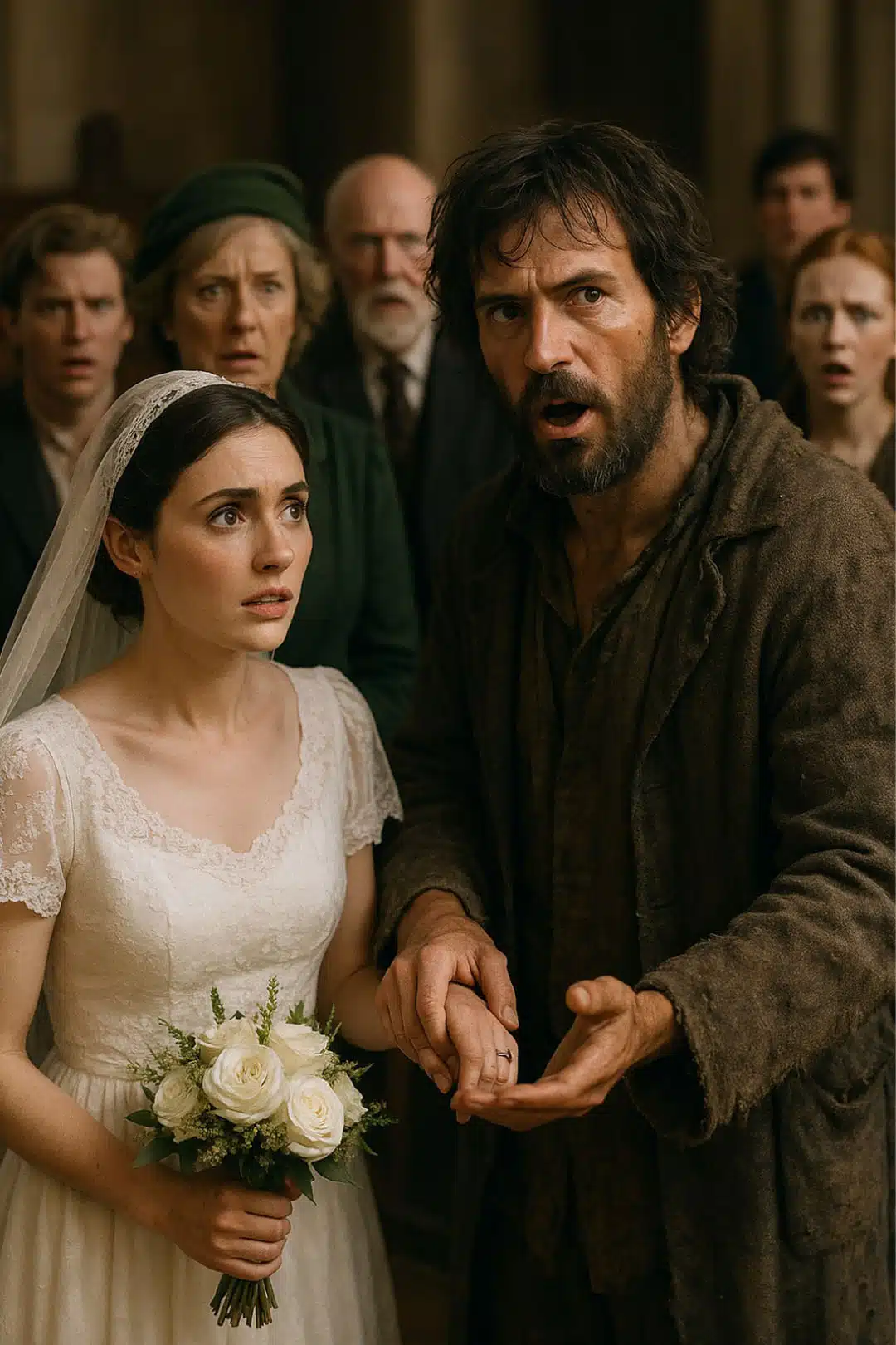 Sous la pression de voir son jeune frère, fragile de santé, jeté à la rue, Clara a cédé. Le jour venu, l’église n’était pas emplie d’invités bienveillants, mais de spectateurs avides de commérages. Un chuchotement collectif a accueilli l’entrée du prétendant : pieds nus, habits déchirés, allure négligée.