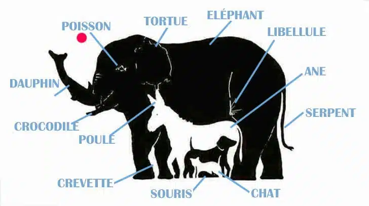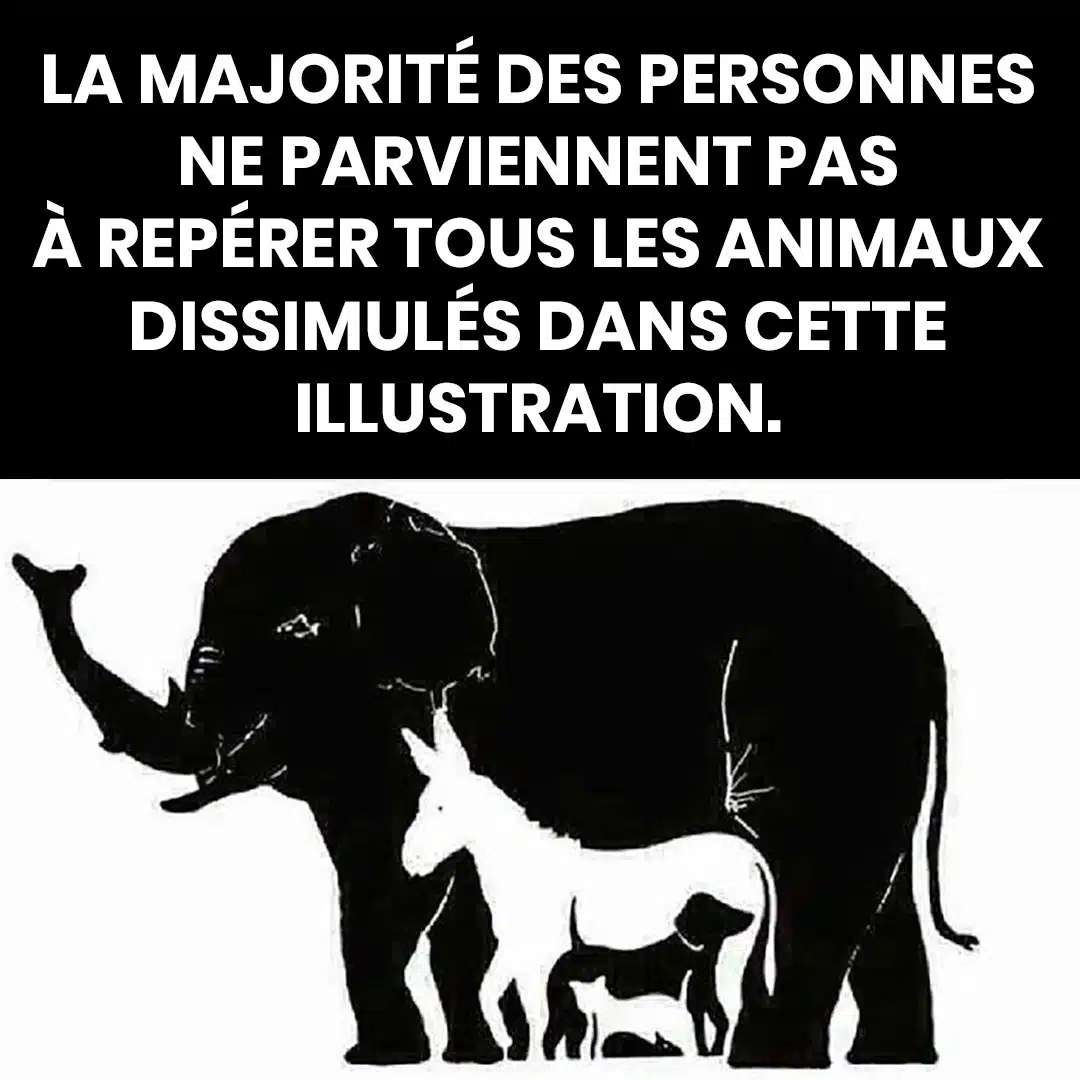 Une illustration particulièrement intrigante circule actuellement sur le web, mettant à l’épreuve même les plus observateurs d’entre nous. Au premier regard, on n’y distingue que cinq animaux : un éléphant, un âne, un chien, un chat et une souris. Pourtant, la vérité est tout autre : pas moins de treize créatures se camouflent dans ce dessin !