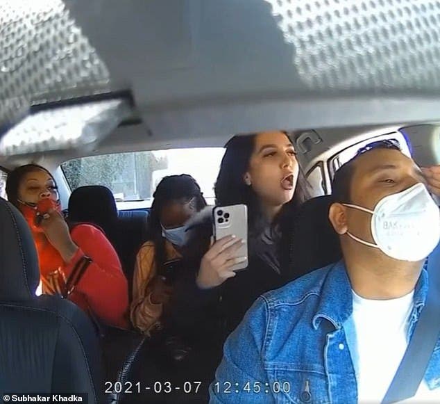 Cette jeune femme a toussé sur son chauffeur de VTC qui portait un masque. Elle était en train de se filmer – Source : Subhakar Khadka