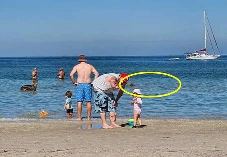 Un cliché familial sur le sable révèle une présence inquiétante dans l’eau