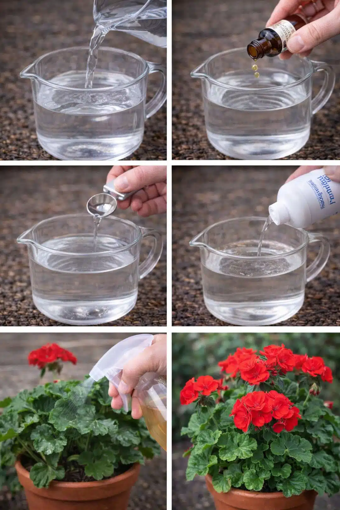 - Utilisez cette préparation pour arroser la terre au pied de vos géraniums, en évitant de trop asperger le feuillage.