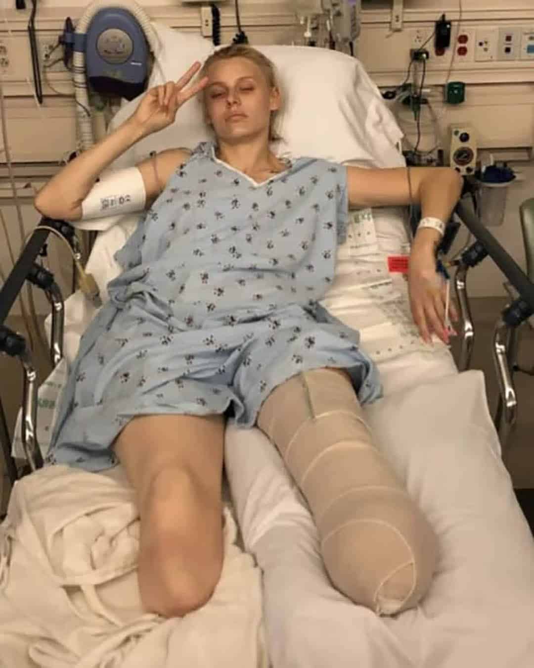Plongée dans un coma artificiel pendant plusieurs jours, elle se bat pour survivre. À son réveil, l’annonce est brutale : pour la sauver, les médecins doivent lui amputer la jambe droite, trop endommagée par l’infection.